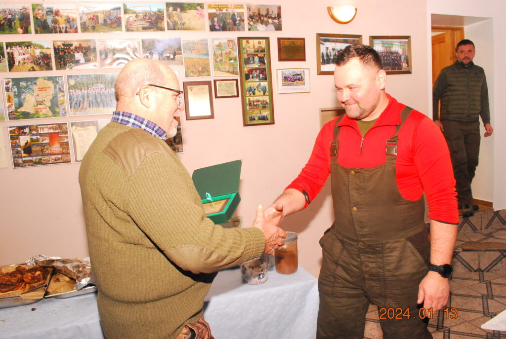 Miłym akcentem było wręczenie przez Prezesa Koła Jerzego Karabanowicza dyplomu koledze Damianowi Topolskiemu z okazji 20-lecia członkostwa w PZŁ oraz naszym Kole Łowieckim.
